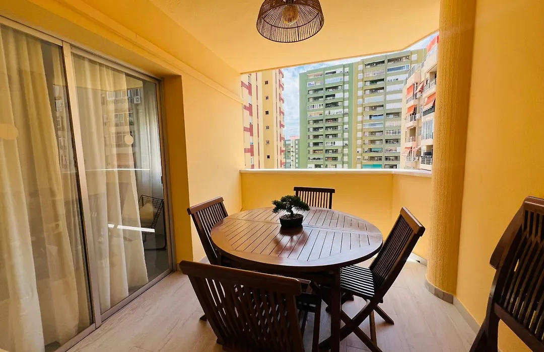 Gelegen binnen slechts 7 minuten wandelen van Monumento a la Peseta, Los Boliches, Nuevo, 3D, Wifi, Aacc, Para 8 van 87 m^2 beschikt over een balkon en een zitruimte met uitzicht op de stad.